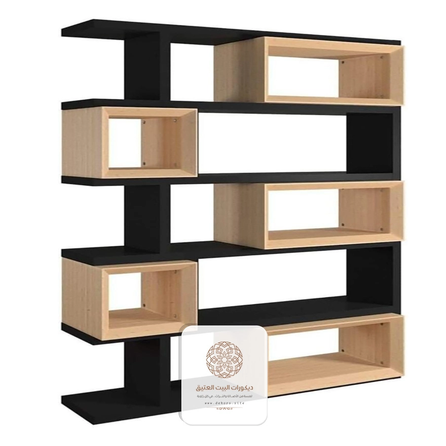 - كذلك التكوينات الهندسية فنحن لا نلتزم بترتيب عادي حيث نقوم بتركيب الرفوف بأشكال هندسية غير متماثلة أو متداخلة.