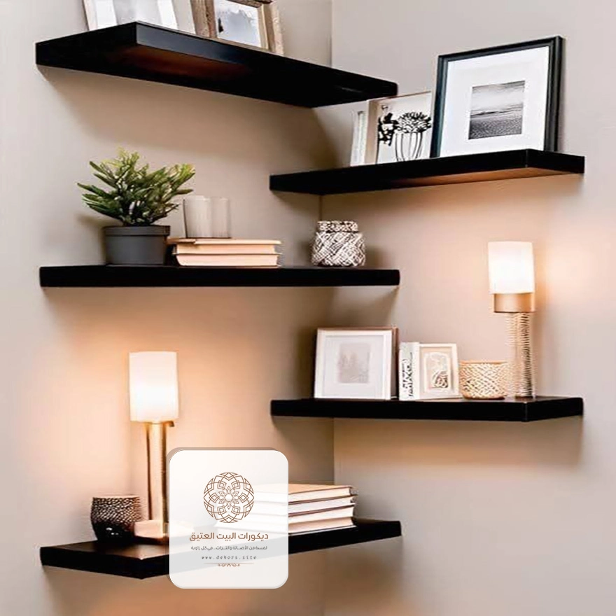 - كذلك رفوف الزوايا من خلال استغلال الزوايا المهملة في الغرف بتركيب رفوف هرمية أو منحنية لإضافة مساحة عرض عملية.